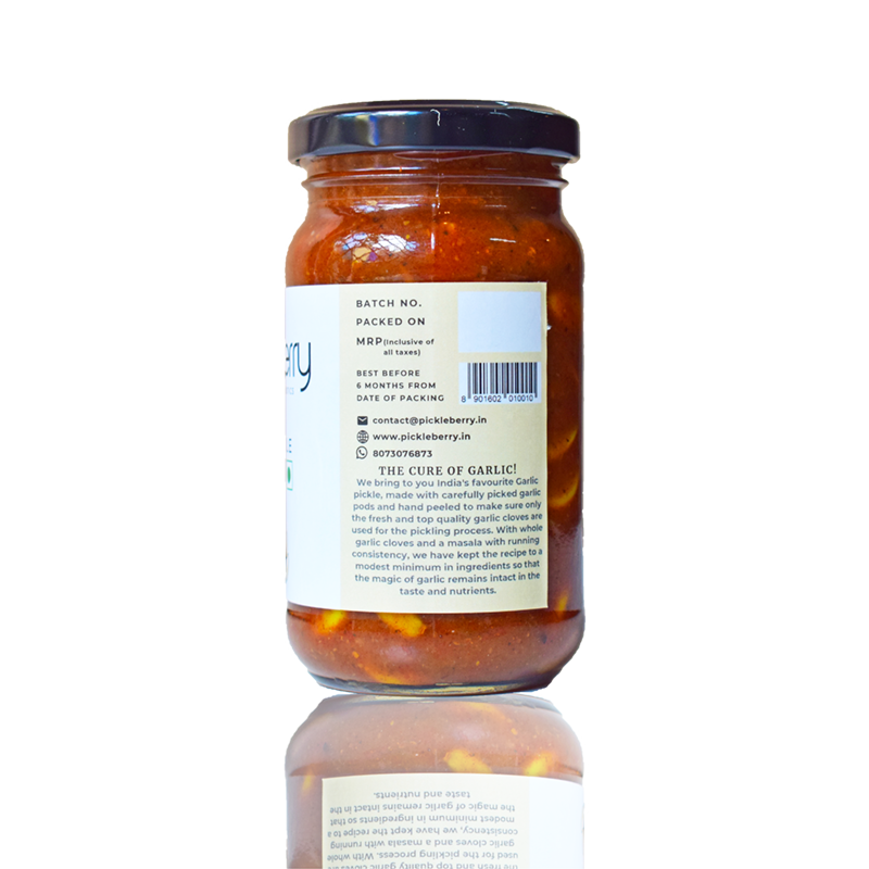 We bring to you India’s favourite Garlic pickle, made with carefully picked garlic pods and hand peeled to make sure only the fresh and top quality garlic cloves are used for the pickling process. With whole garlic cloves and a masala with running consistency, we have kept the recipe to a modest minimum in ingredients so that the magic of garlic remains intact in the taste and nutrients.