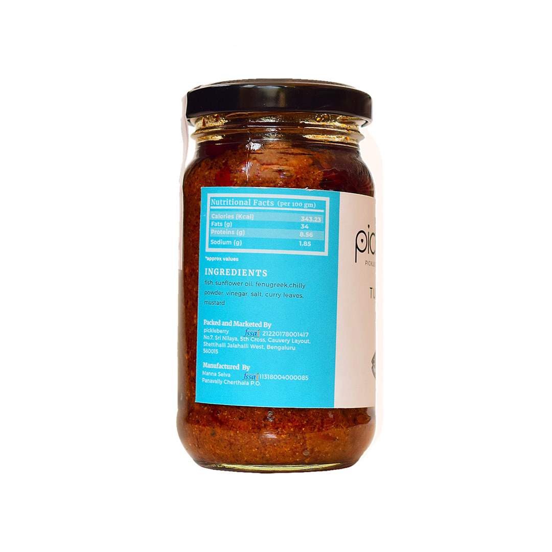 Inspired by traditional Kochi style where Tuna is a beloved fish of the locals, chunks of fresh tuna meat is naturally dried, fried and pickled with natural Arabian Coast spices mix, vinegar and oil. This is a pickle that every seafood lover would relish endlessly. You can expect the meat to be a bit hard but very juicy with the masala and vinegar soaked in it when chewed. It is an amazing side to your meal. It goes well with Roti and Dal Rice. Do you know that tuna meat is a good source of calories, proteins and essential vitamins? Our customers love this and it has always been one of our bestsellers!
